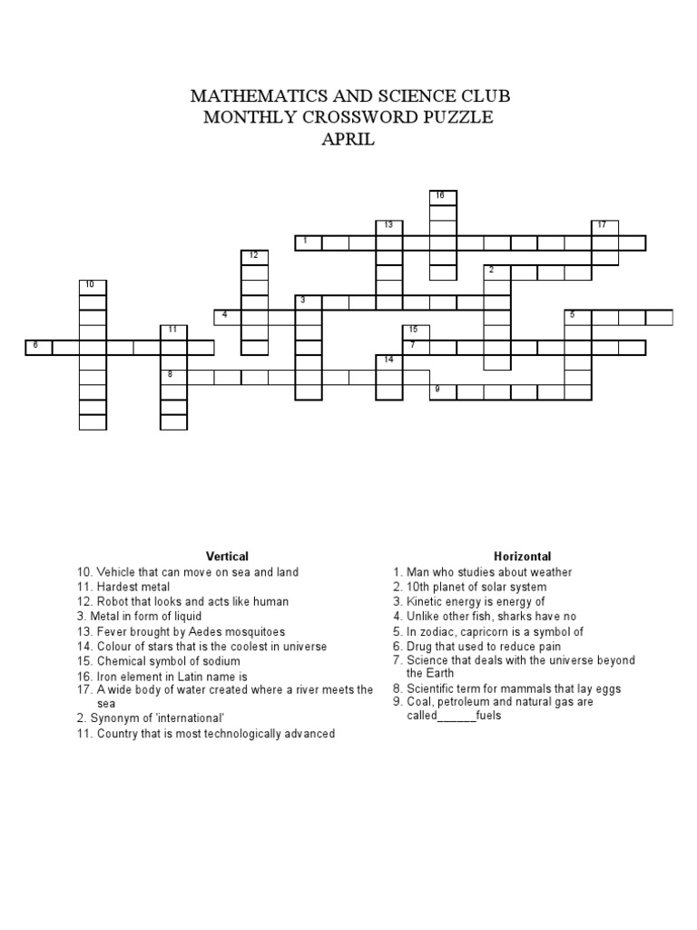 There are no spaces between words in the puzzle. Pdf drive investigated dozens of problems and listed the biggest global issues facing the world today. Download as printable pdf worksheets or solve online. Crossword puzzles for kids in science, english, maths, cyber and general knowledge of grade 8. They also highlight some of the connections you can complete the crossword online or download the pdf for the basics of science crossword and its answers to complete it offline. Our collection of free printable crossword puzzles for kids is an easy and fun way for children and students of all ages to become familiar with a subject or try out our other word puzzles. Faculty of computer science university lancang kuning; Make a crossword puzzle make a word search from a reading assignment make a word search from a list of words. Unlike crosswords, these numerical grids require. If we allow each word to be placed in any space of correct length. These science crossword puzzles can help you think about the meanings of a few key scientific terms in english. The way • universe • jet engine • plant science • animal science • invented subject • wildlife science • substance science • combustible substance • mechanism doing any work • meteorological instrument • science of celestial bodies • the person who. To find whether using the crossword puzzle.